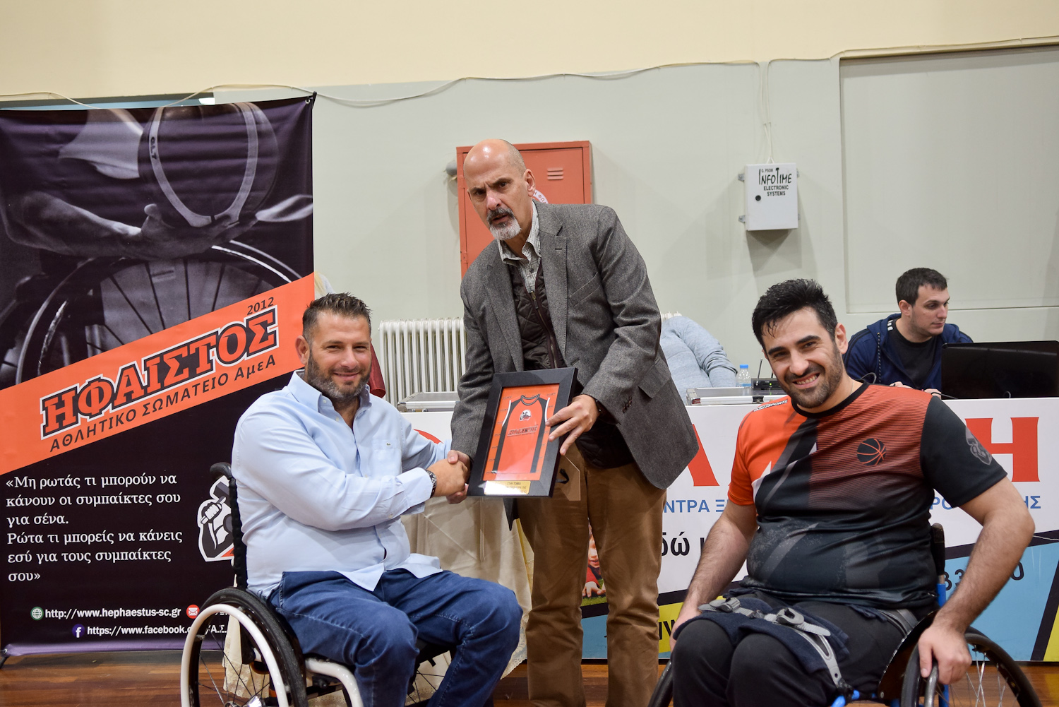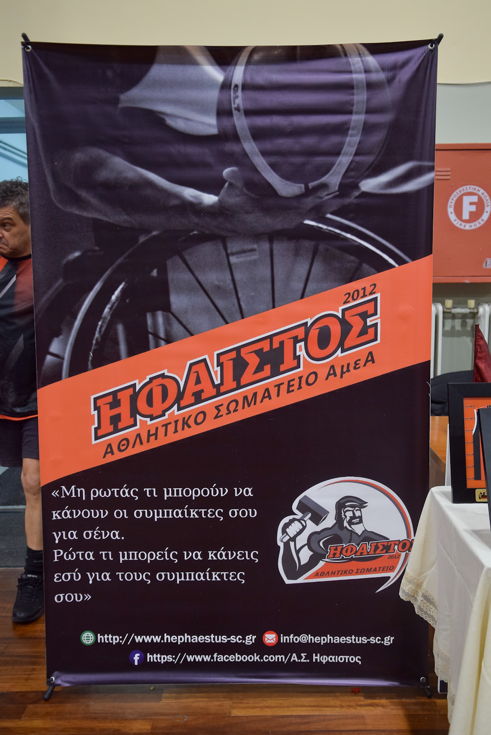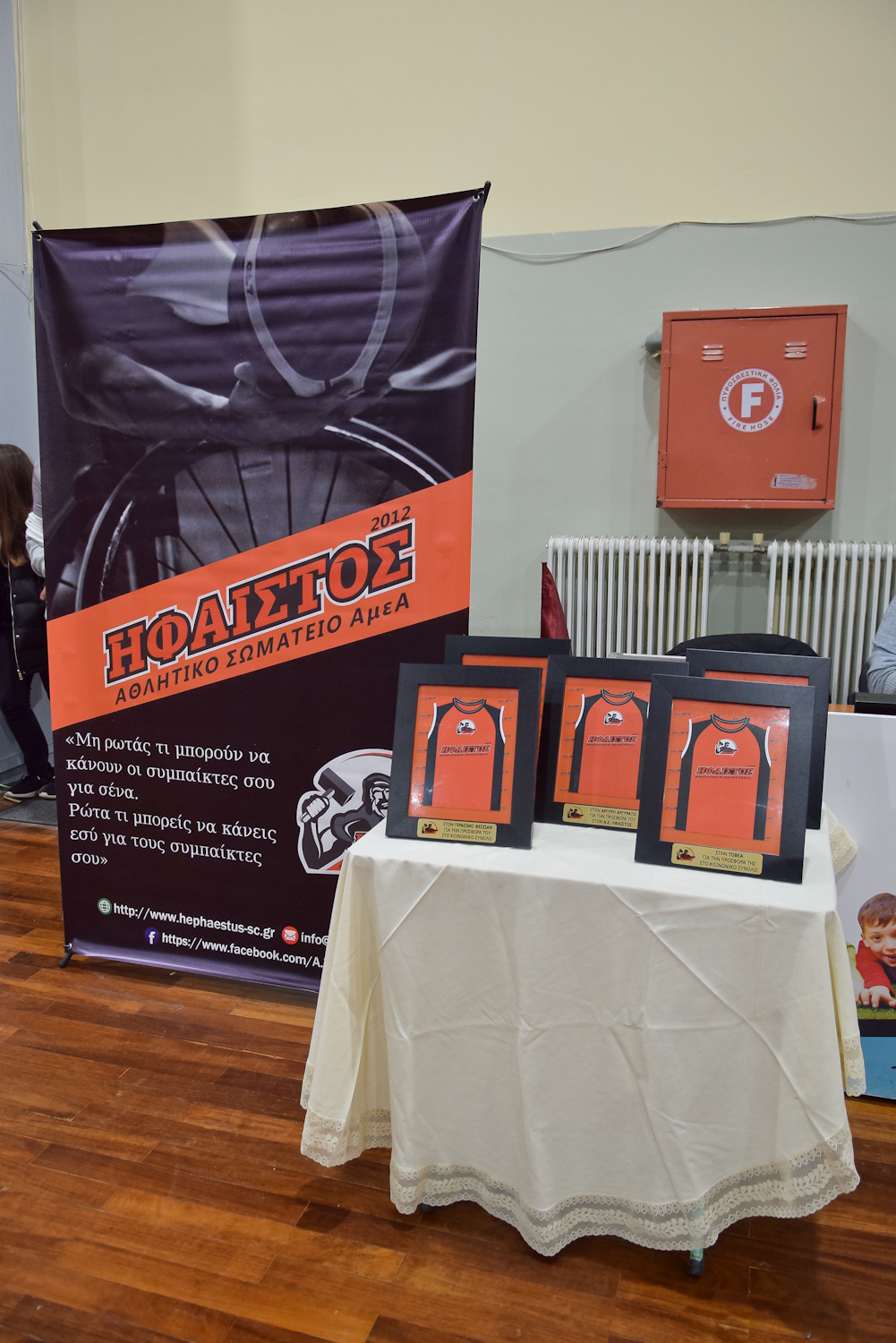 Με αφορμή τη Παγκόσμια ημέρα ατόμων με αναπηρία την Τρίτη 03.12.2019 στο κλειστό γήπεδο Ροϊτίκων ο Α.Σ. ΑμεΑ ΗΦΑΙΣΤΟΣ παρουσίασε την ομάδα καλαθοσφαίρισης, το Διοικητικό Συμβούλιο, ευχαρίστησε τους χορηγούς του και βράβευσε συνανθρώπους μας για το κοινωνικό τους έργο.