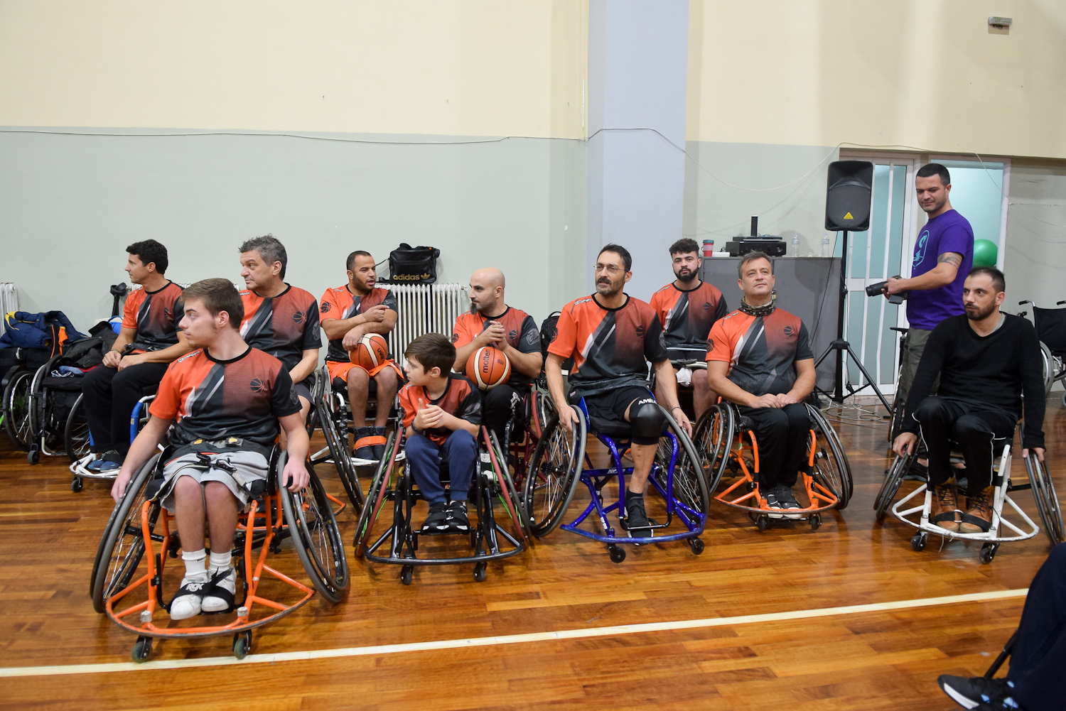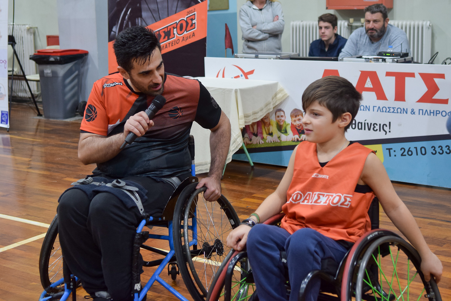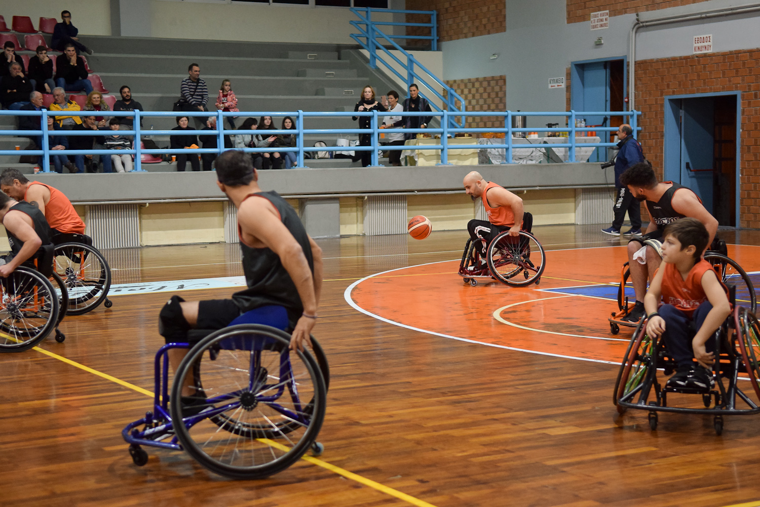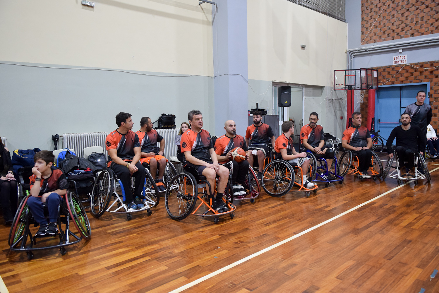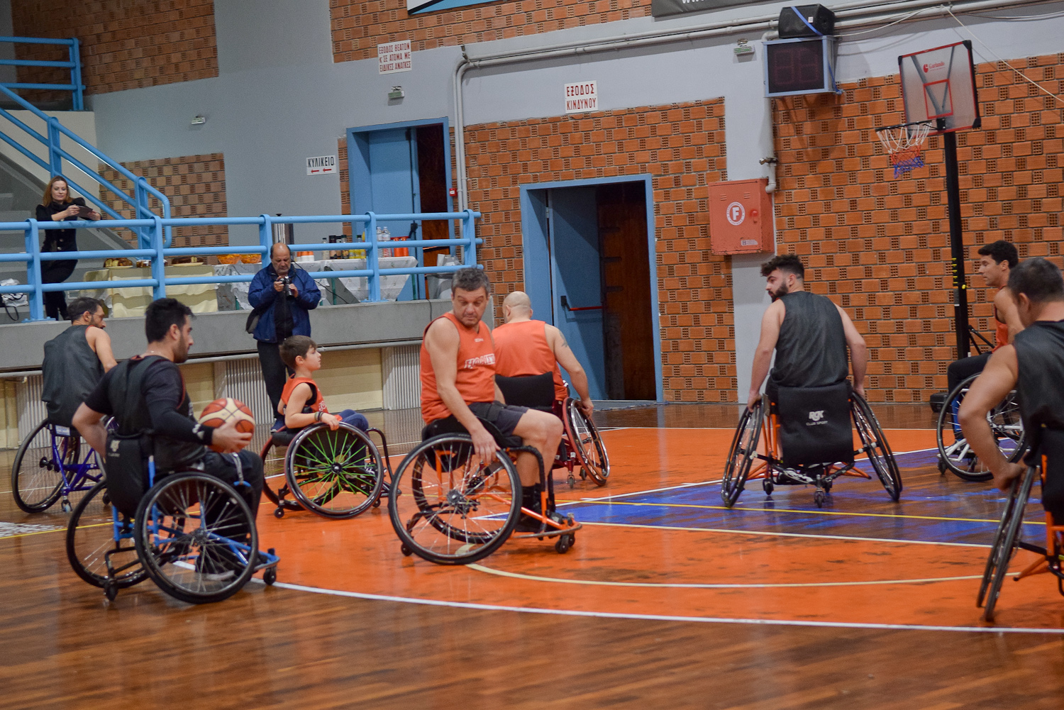 Οι παρευρισκόμενοι είχαν την ευκαιρία να δουν αγώνα επίδειξης μπάσκετ με αμαξίδιο από τους αθλητές μπάσκετ του Ηφαίστου.