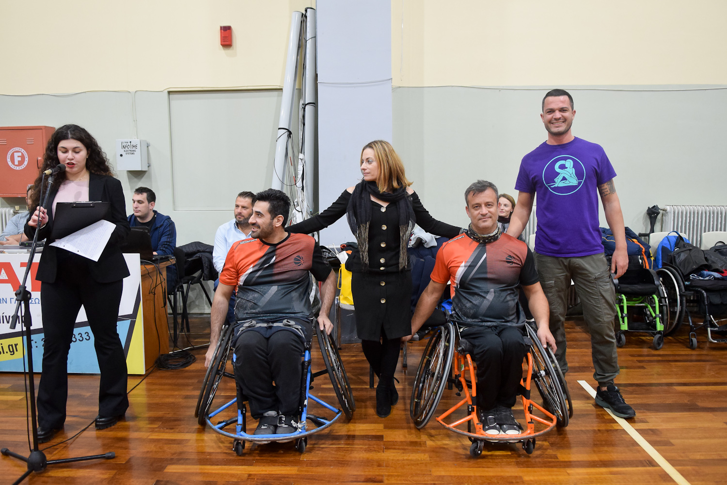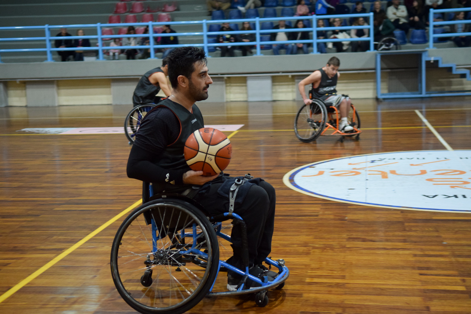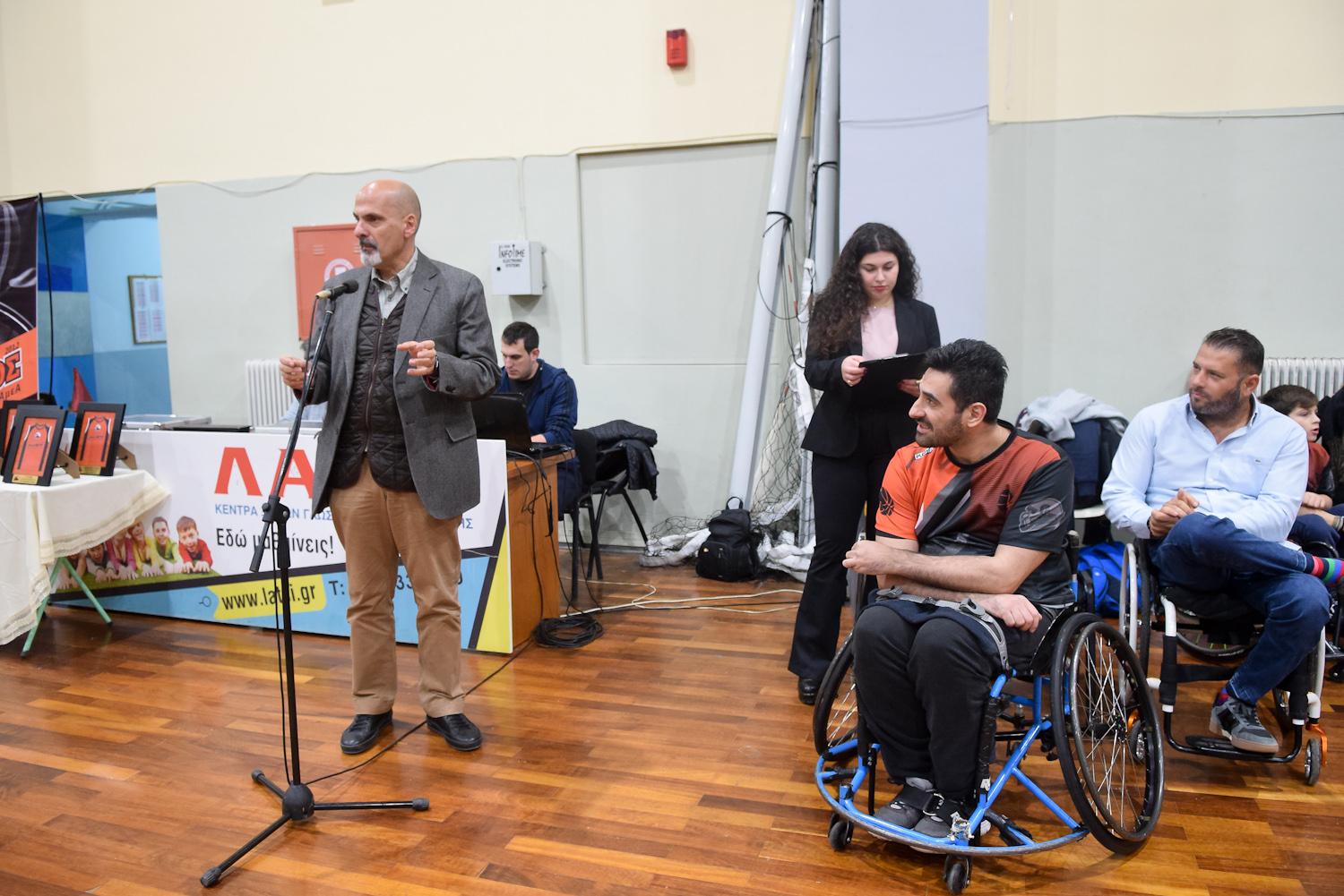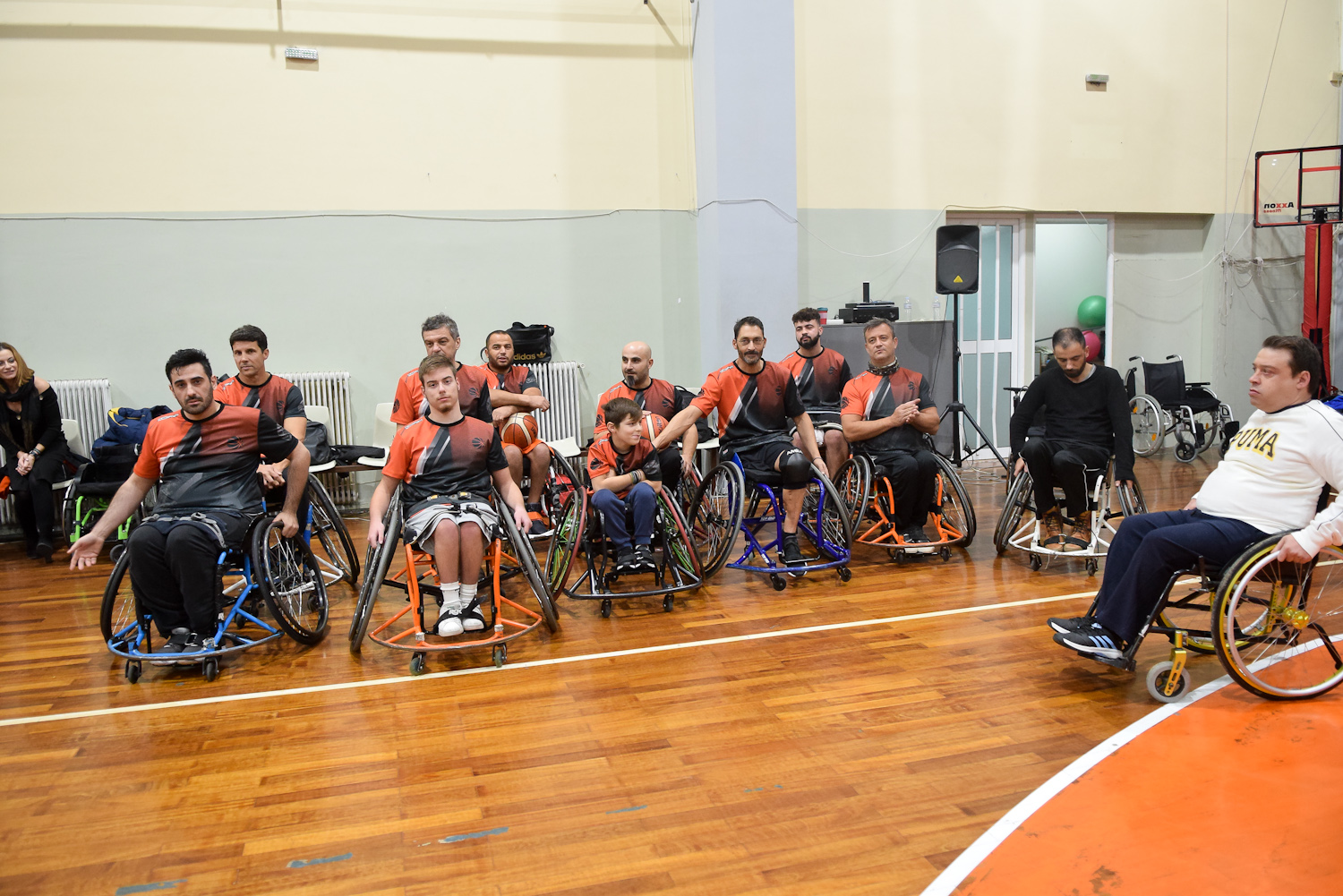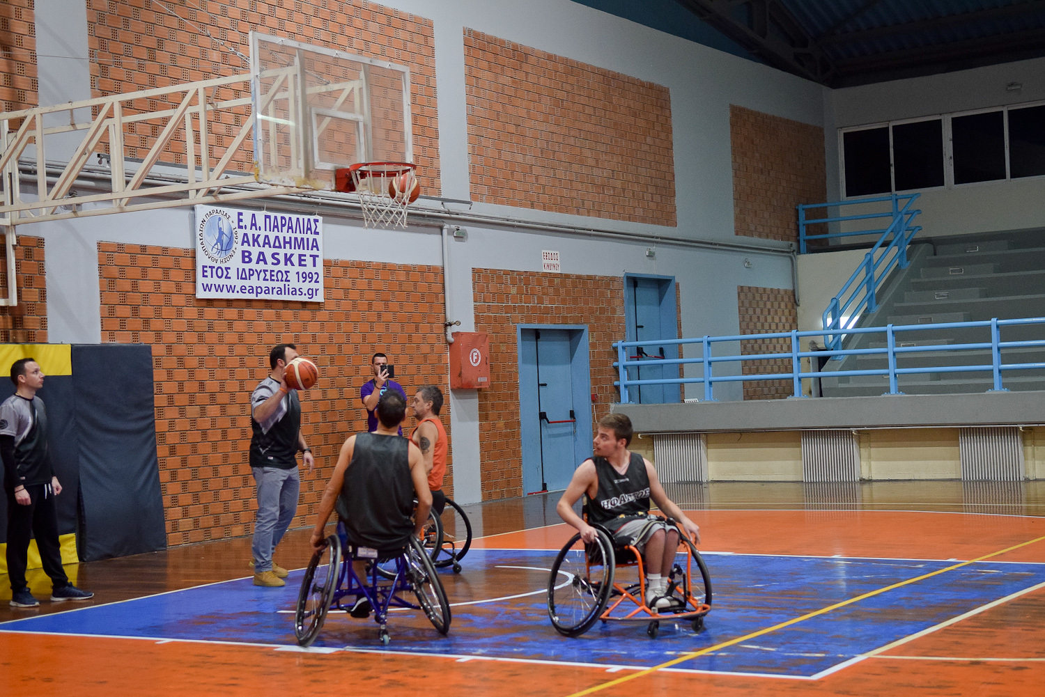 Οι παρευρισκόμενοι είχαν την ευκαιρία να δουν αγώνα επίδειξης μπάσκετ με αμαξίδιο από τους αθλητές μπάσκετ του Ηφαίστου.