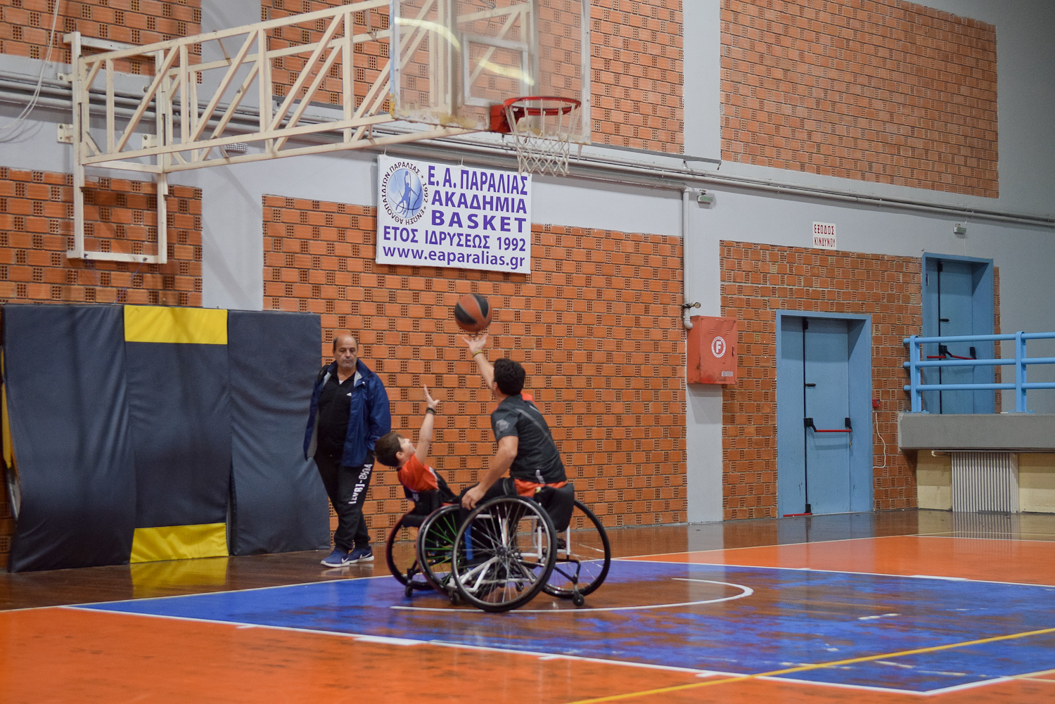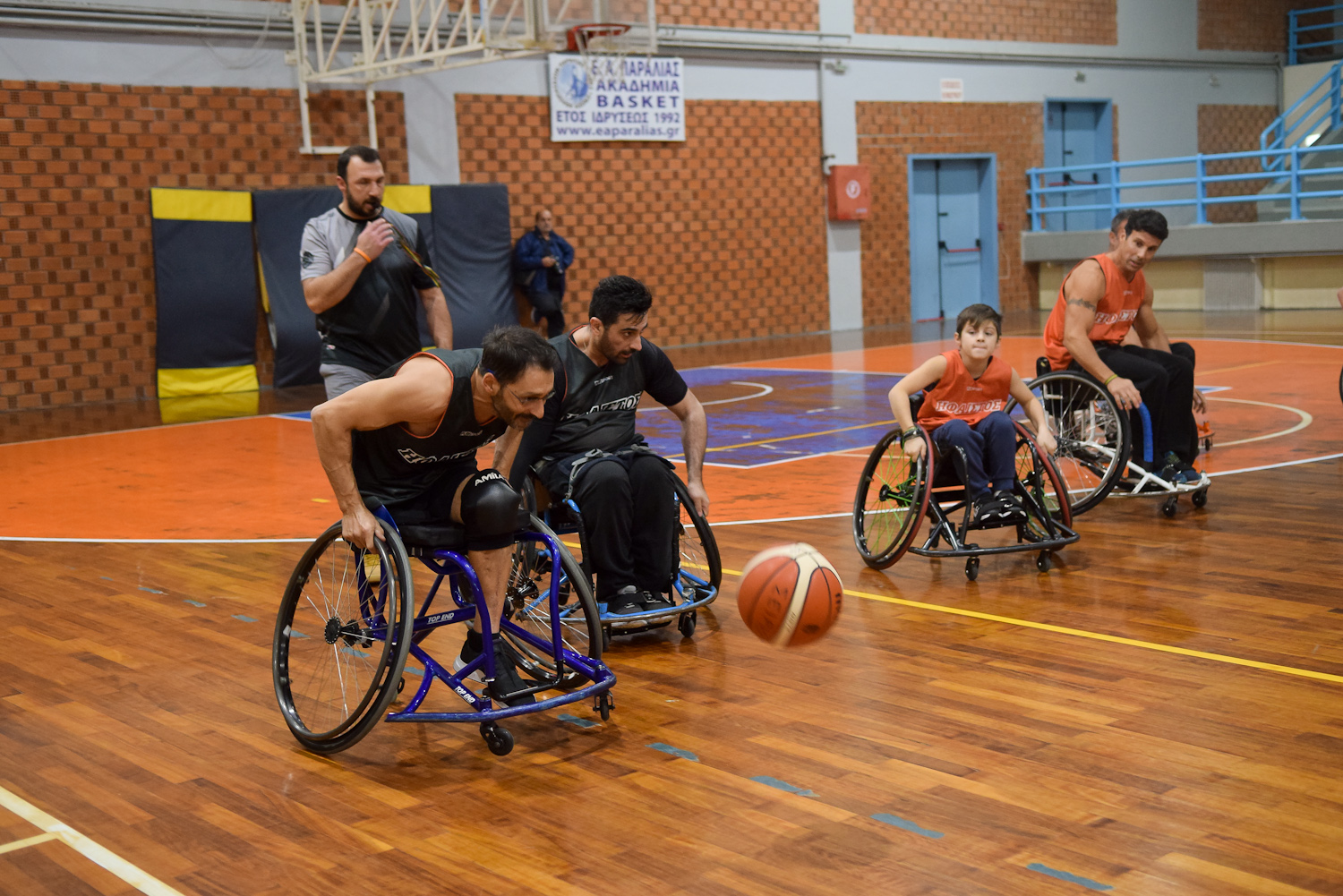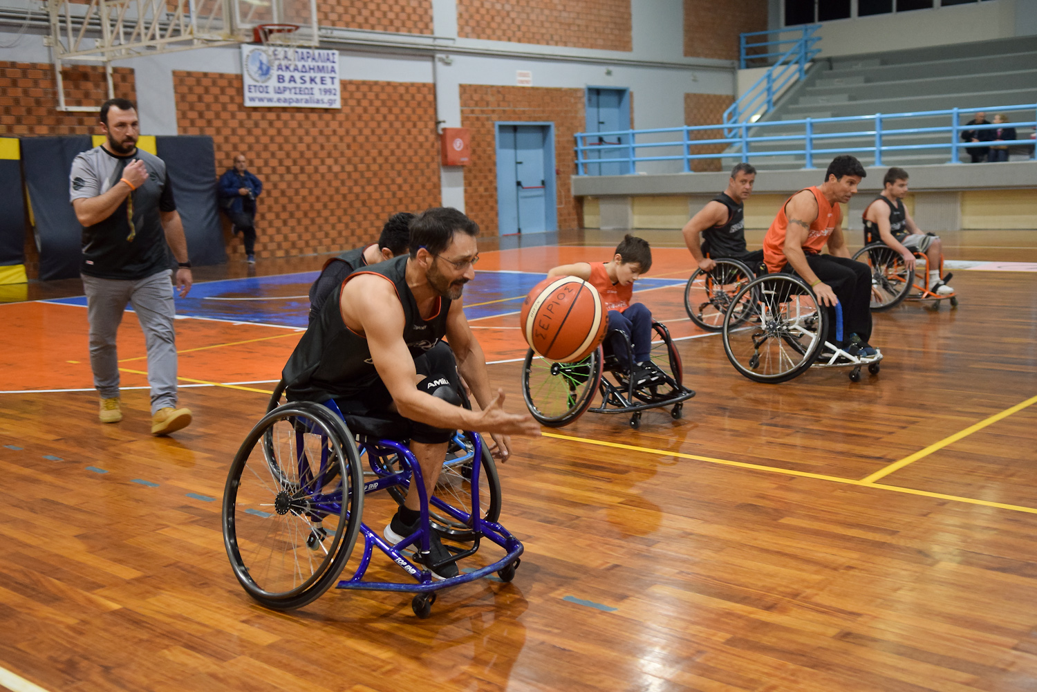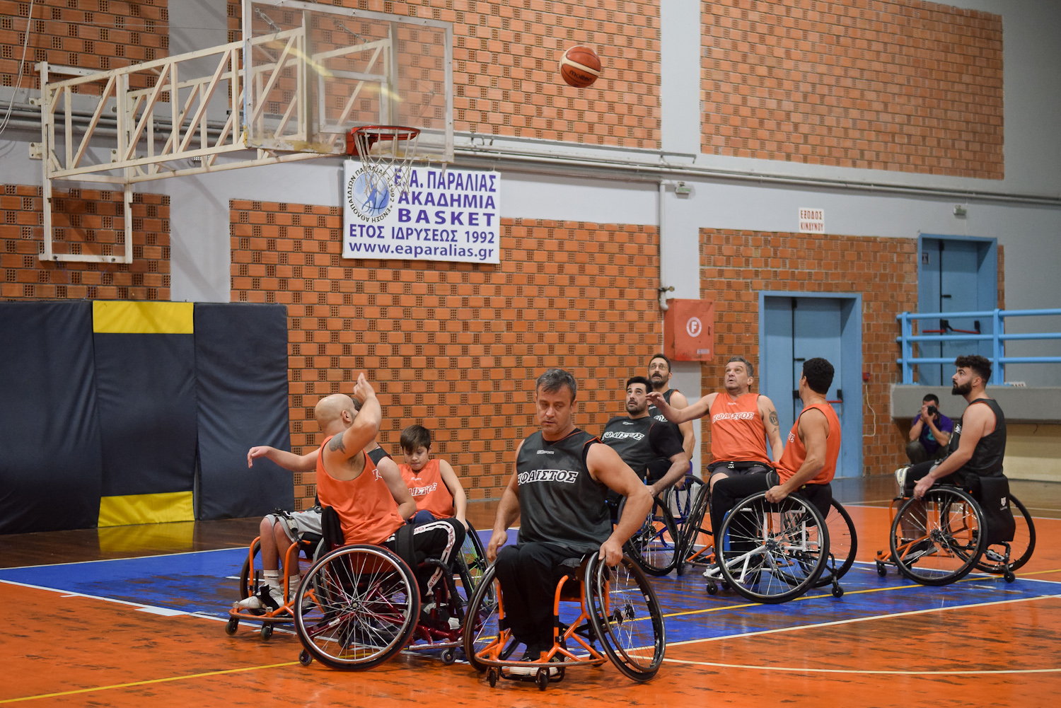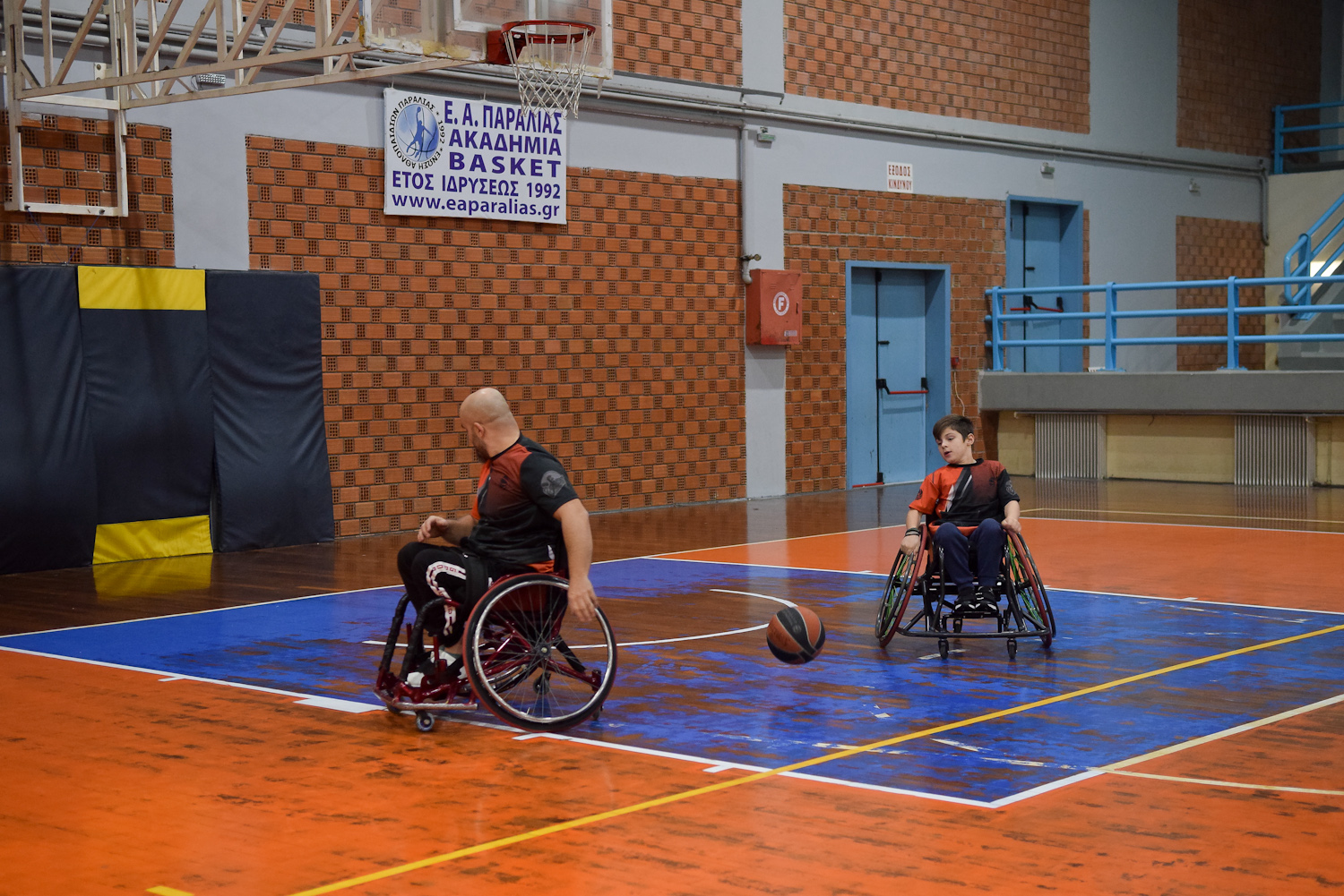 Οι παρευρισκόμενοι είχαν την ευκαιρία να δουν αγώνα επίδειξης μπάσκετ με αμαξίδιο από τους αθλητές μπάσκετ του Ηφαίστου.
