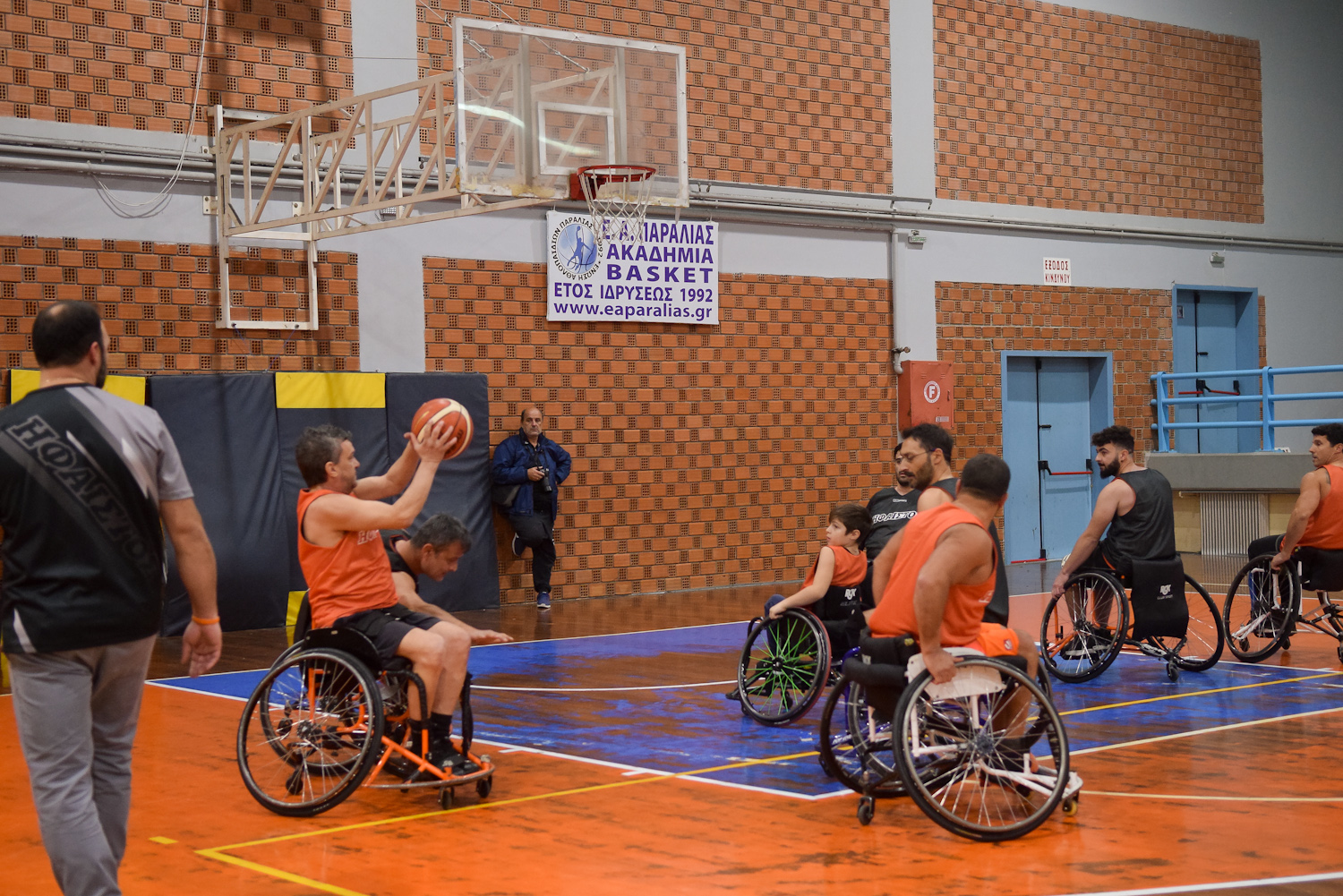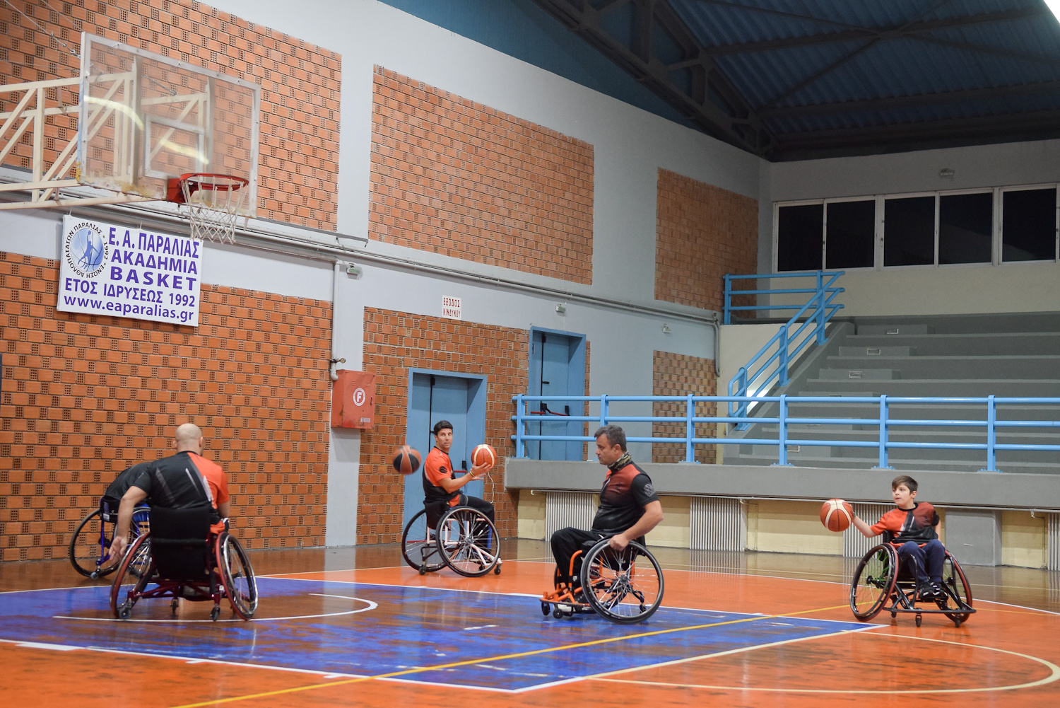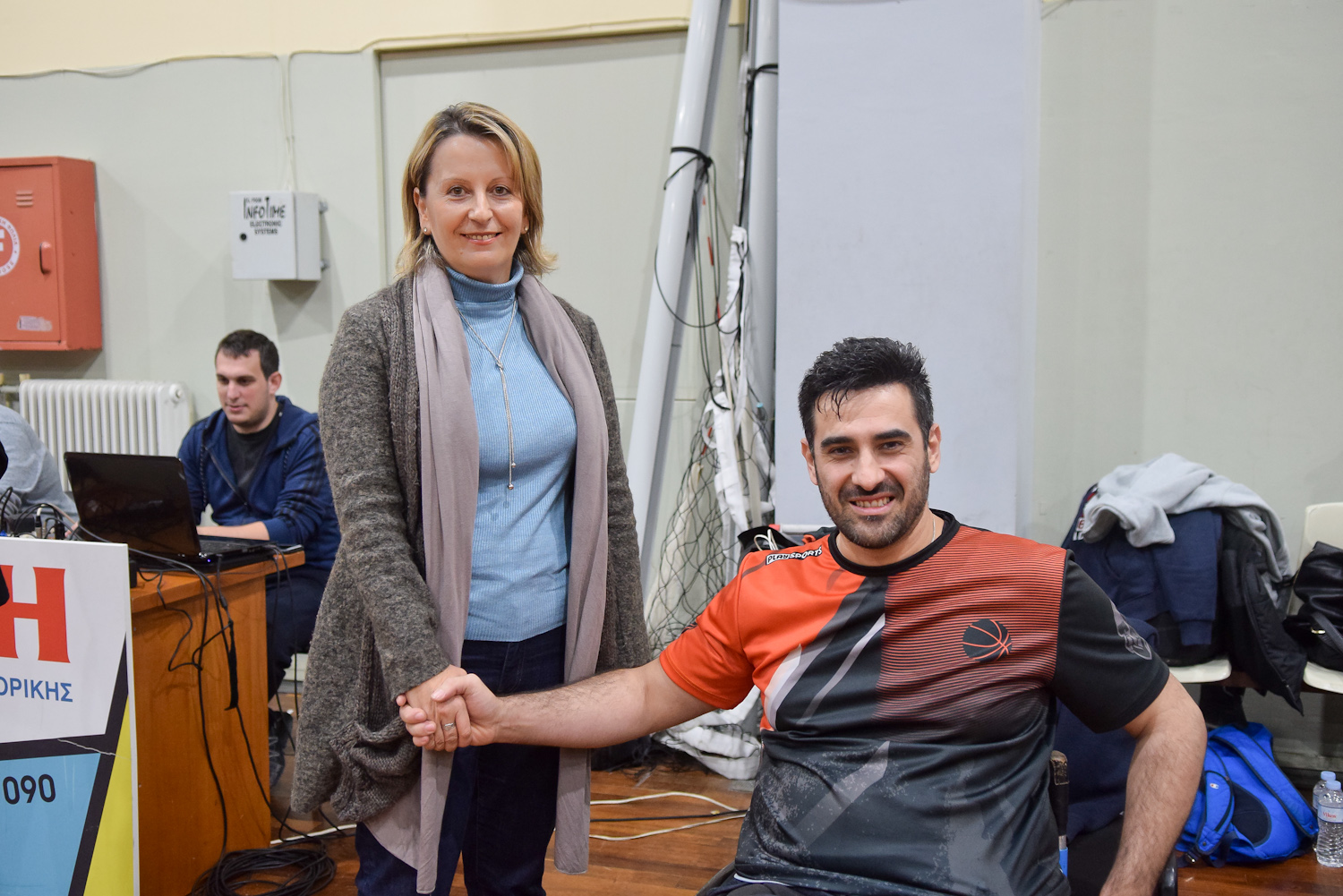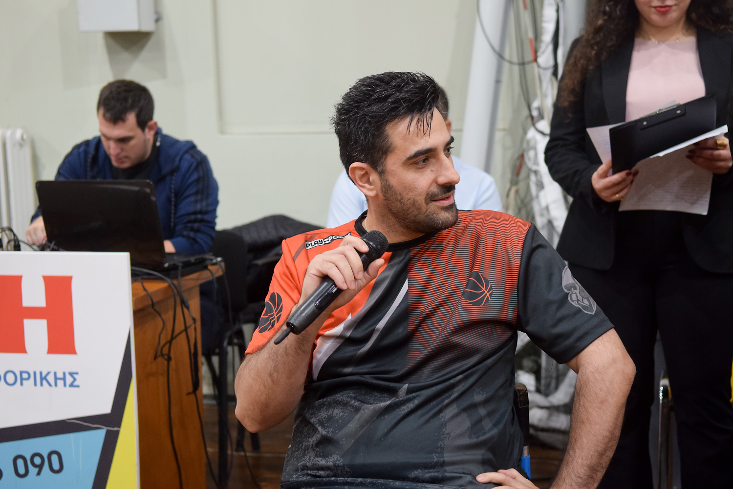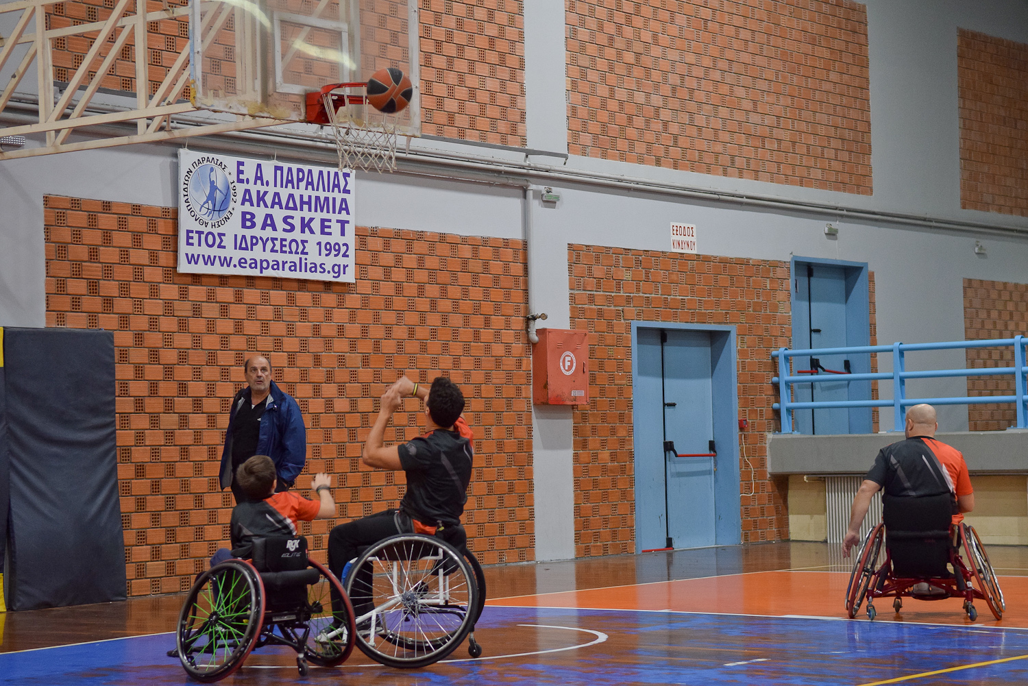 Οι παρευρισκόμενοι είχαν την ευκαιρία να δουν αγώνα επίδειξης μπάσκετ με αμαξίδιο από τους αθλητές μπάσκετ του Ηφαίστου.