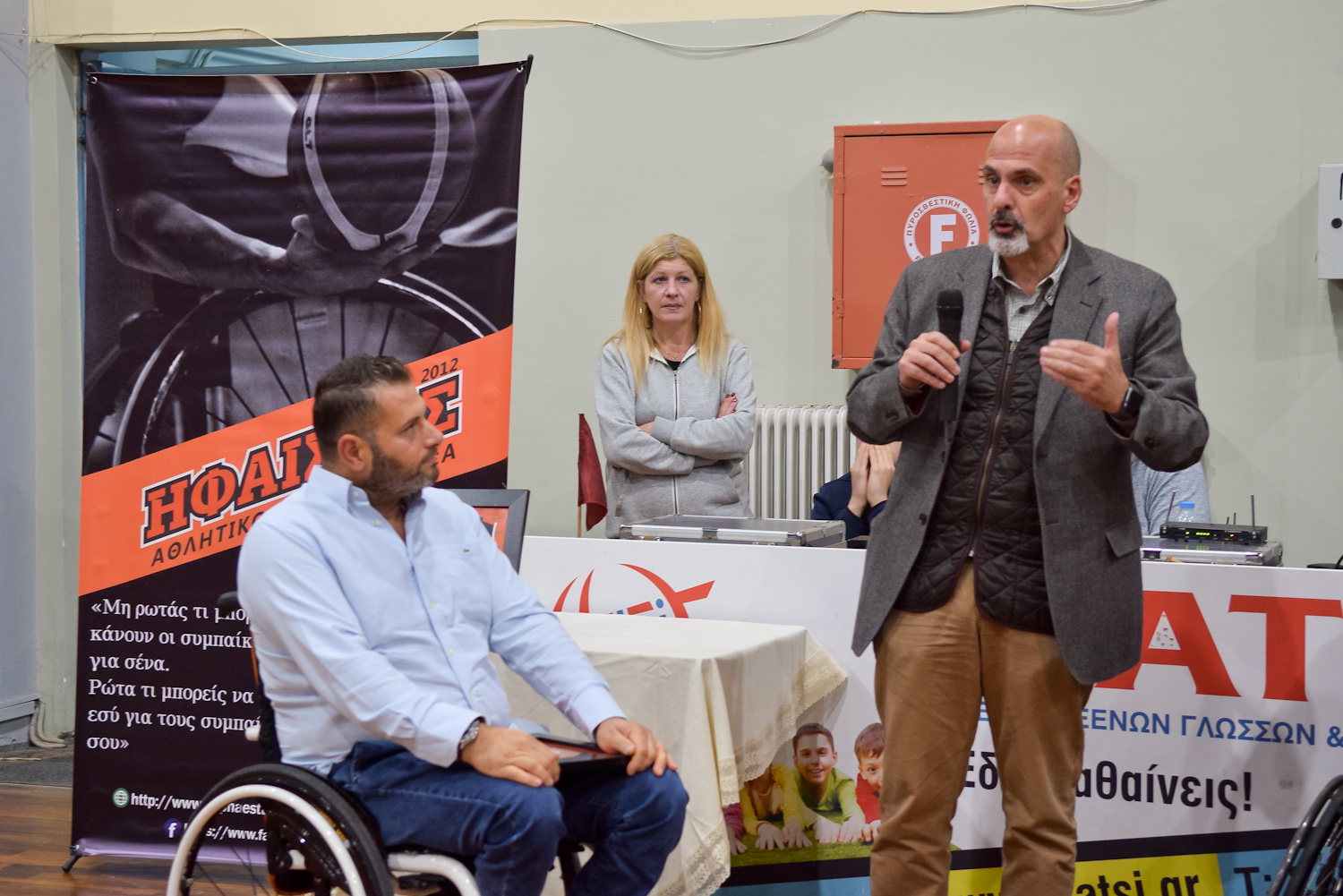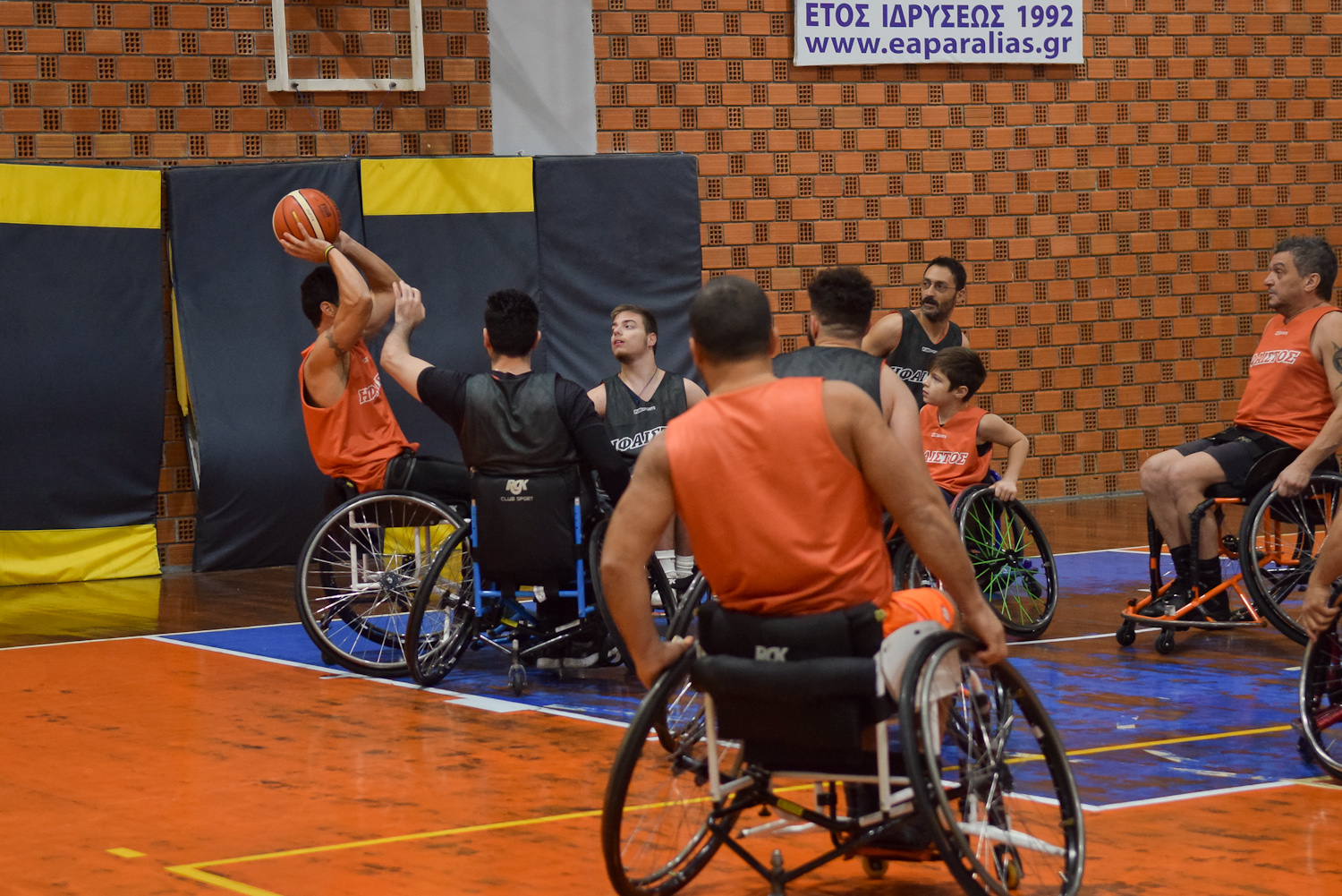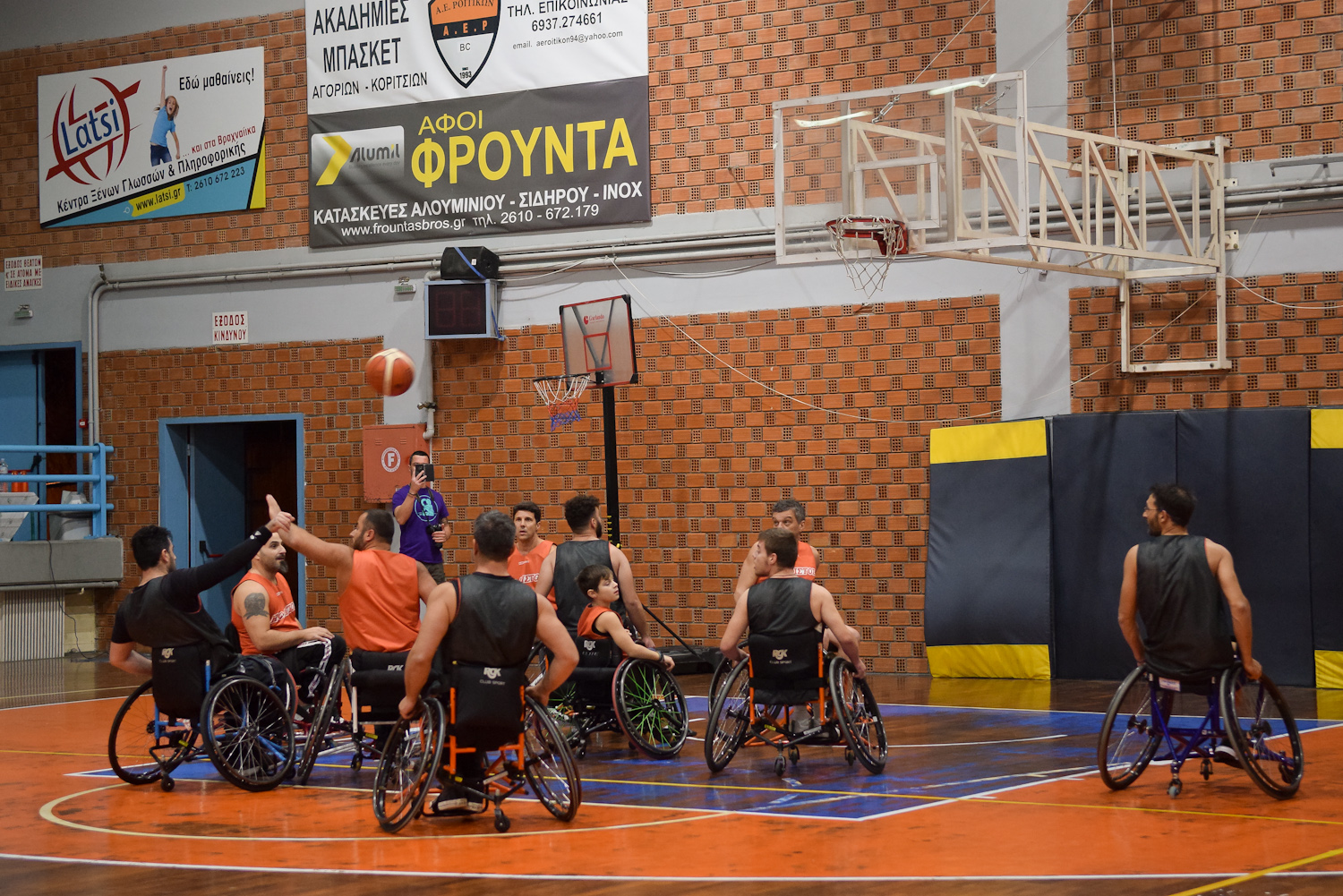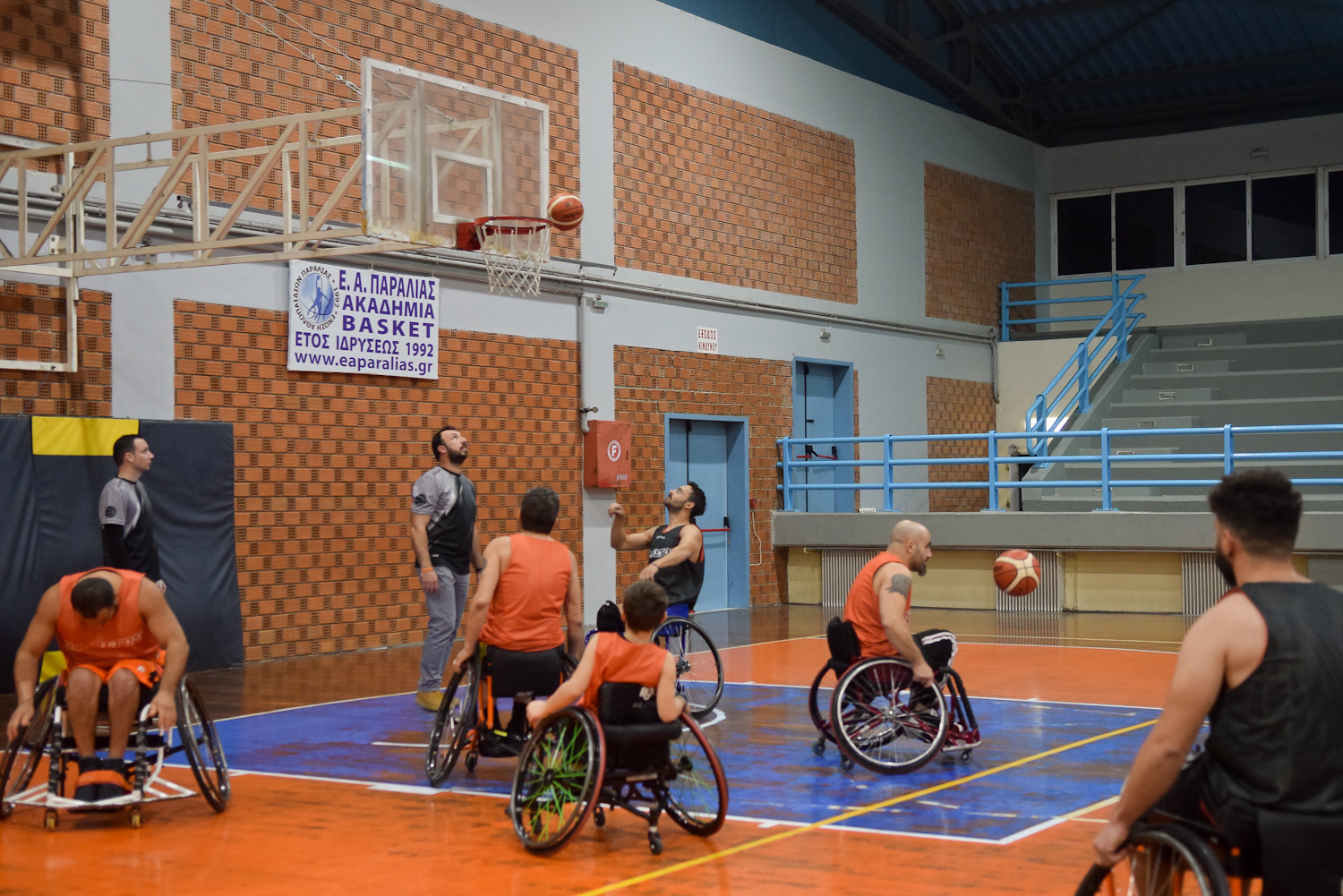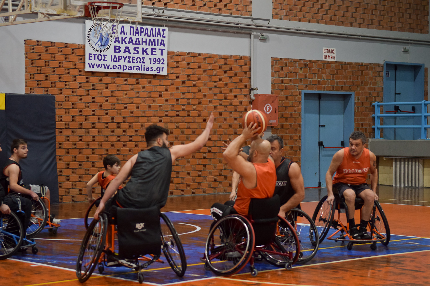 Οι παρευρισκόμενοι είχαν την ευκαιρία να δουν αγώνα επίδειξης μπάσκετ με αμαξίδιο από τους αθλητές μπάσκετ του Ηφαίστου.