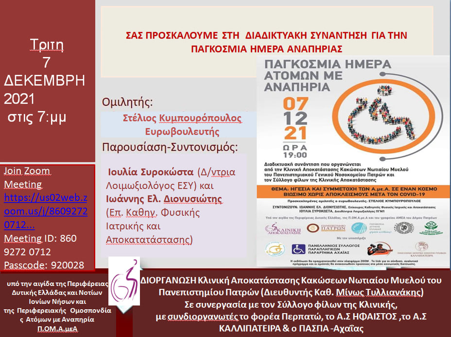 ΔΙΑΔΙΚΤΥΑΚΗ ΣΥΝΑΝΤΗΣΗ ΓΙΑ ΤΗΝ ΠΑΓΚΟΣΜΙΑ ΗΜΕΡΑ ΑΝΑΠΗΡΙΑΣ