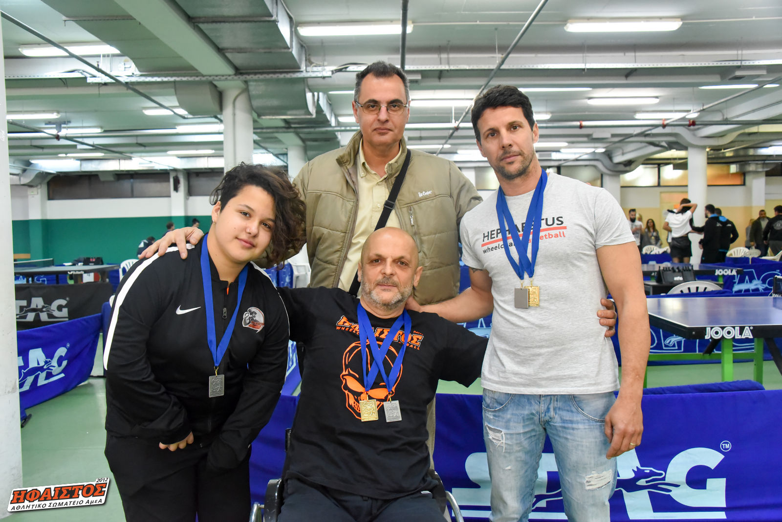 Το πρωινό του Σαββάτου, οι αθλητές του ΗΦΑΙΣΤΟΥ Παναγιώτης Αγγελούδης (ΤΤ4) και Παναγιώτης Παπουτσόπουλος (ΤΤ5), αγωνίσθηκαν για το Ομαδικό Ανδρών της κατηγορίας ΤΤ4-5 αρχικά με την ομάδα του ΤΡΙΠΤΟΛΕΜΟΥ (Στάμος Χ.-ΤΤ2, Κουνενός Μ.-ΤΤ4) από την οποία ηττήθηκαν με 0-2 (1-3 και 0-3), ενώ στη συνέχεια επικράτησαν με 2-0  (3-0 και 3-0) της ομάδας του ΠΑΣΚΑ (Γ. Μακρής-ΤΤ5, Ι. Χρυσοβέργης-ΤΤ1). Η ήττα της ομάδας του ΠΑΣΚΑ από τον ΤΡΙΠΤΟΛΕΜΟ, χάρισε τη δεύτερη θέση και το ασημένιο μετάλλιο στους Αγγελούδη και Παπουτσόπουλο οι οποίοι με την απόδοσή τους έδωσαν υποσχέσεις για τη συνέχεια.
