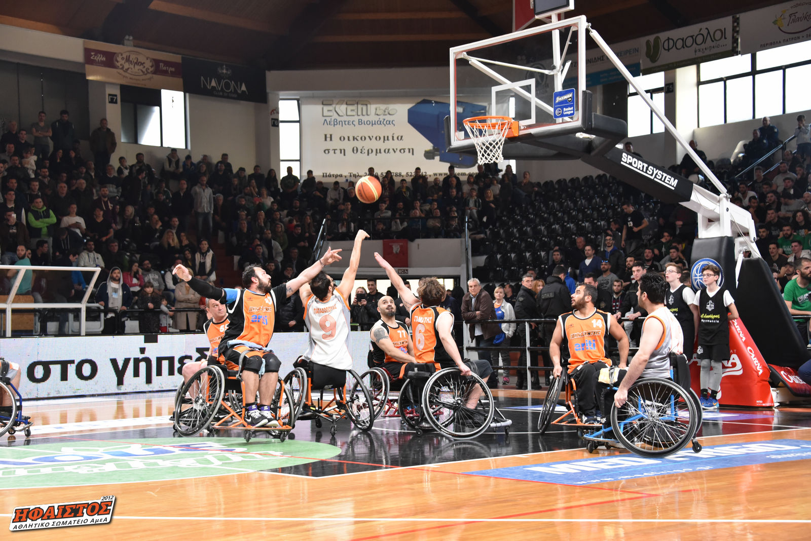 Στο κατάμεστο γήπεδο της Περιβόλας, στο ημίχρονο του αγώνα μεταξύ του ΑΠΟΛΛΩΝΑ “CARNA” και του ΠΑΝΑΘΗΝΑΪΚΟΥ “SUPERFOODS” στα πλαίσια της 21ης αγωνιστικής, οι φίλαθλοι και των δύο ομάδων υποδέχθηκαν τους αθλητές του Τμήματος Καλαθοσφάιρισης με Αμαξίδιο του Α.Σ. ΑμεΑ ΗΦΑΙΣΤΟΣ.